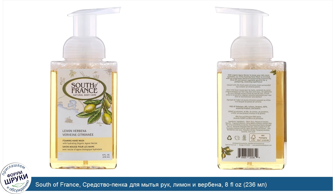 Друзья, если у вас есть отзыв/дополнение/комментарий/вопрос относительно South of France, Средство-пенка для мытья рук, лимон и вербена, 8 fl oz (236 мл) - напишите его ответом в эту тему (это будет полезно всему сообществу в целом и вам в отдельности).