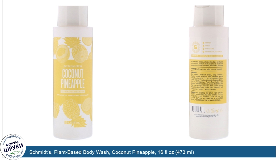 Друзья, если у вас есть отзыв/дополнение/комментарий/вопрос относительно Schmidt's, Plant-Based Body Wash, Coconut Pineapple, 16 fl oz (473 ml) - напишите его ответом в эту тему (это будет полезно всему сообществу в целом и вам в отдельности).