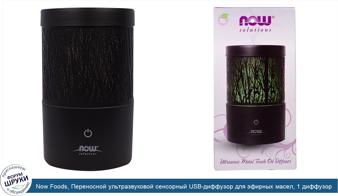 Now Foods, Переносной ультразвуковой сенсорный USB-диффузор для эфирных масел, 1 диффузор