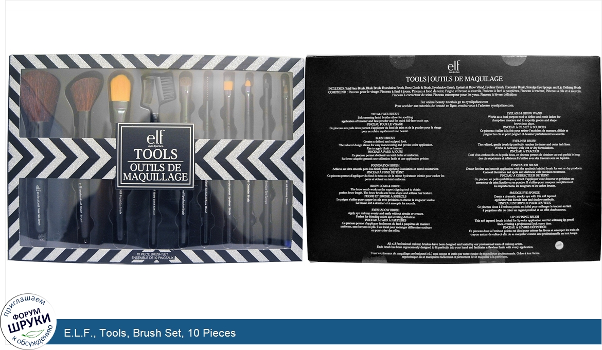 Друзья, если у вас есть отзыв/дополнение/комментарий/вопрос относительно E.L.F., Tools, Brush Set, 10 Pieces - напишите его ответом в эту тему (это будет полезно всему сообществу в целом и вам в отдельности).