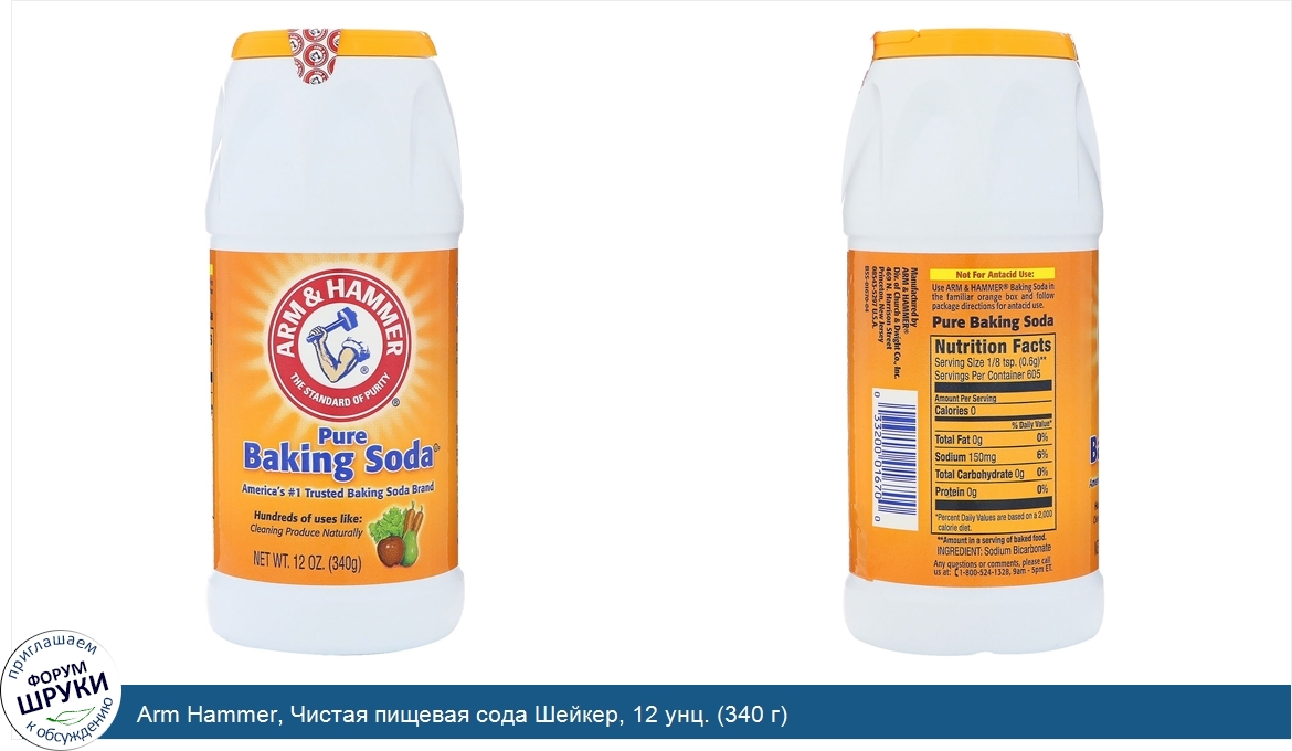 Друзья, если у вас есть отзыв/дополнение/комментарий/вопрос относительно Arm Hammer, Чистая пищевая сода Шейкер, 12 унц. (340 г) - напишите его ответом в эту тему (это будет полезно всему сообществу в целом и вам в отдельности).