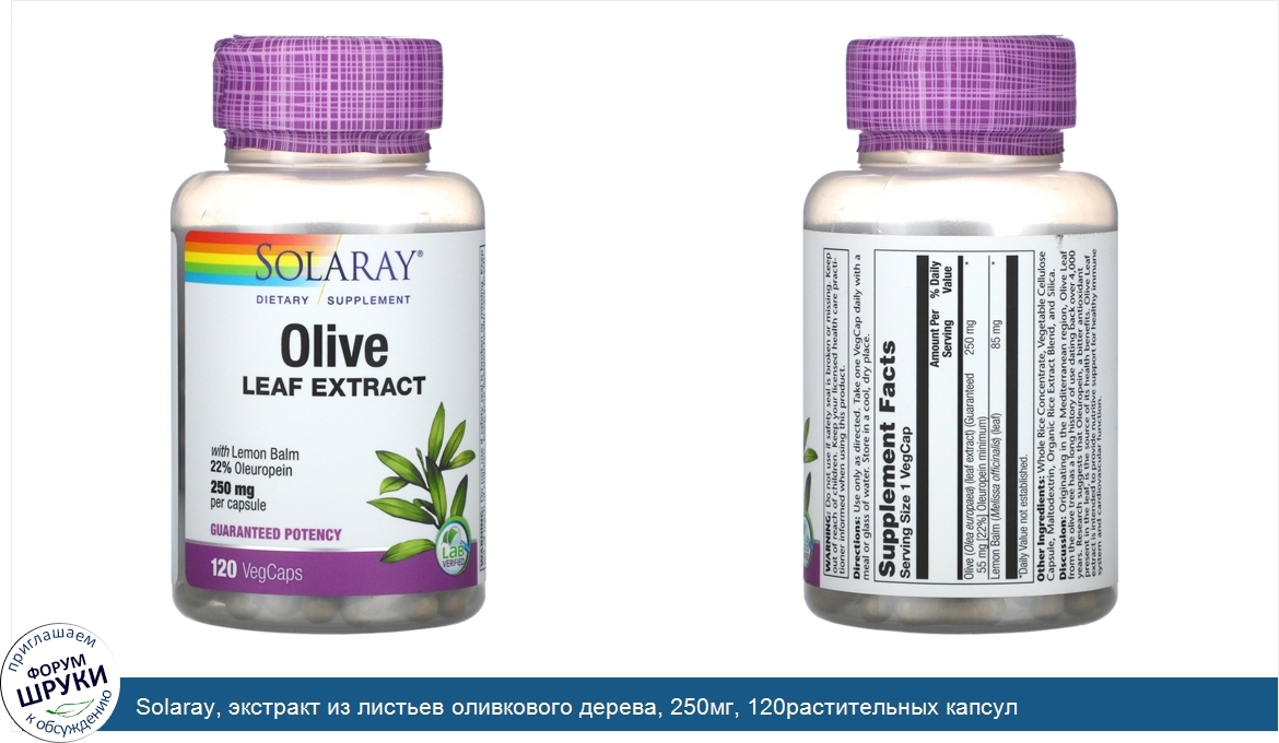 Друзья, если у вас есть отзыв/дополнение/комментарий/вопрос относительно Solaray, экстракт из листьев оливкового дерева, 250мг, 120растительных капсул - напишите его ответом в эту тему (это будет полезно всему сообществу в целом и вам в отдельности).