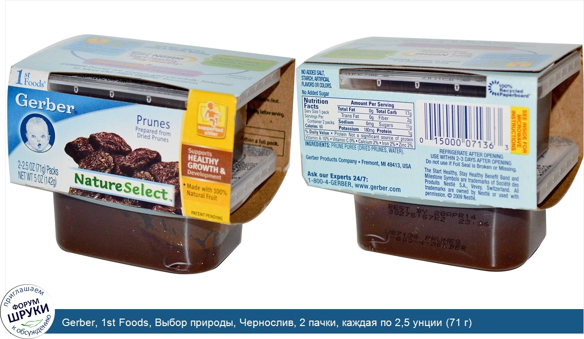 Друзья, если у вас есть отзыв/дополнение/комментарий/вопрос относительно Gerber, 1st Foods, Выбор природы, Чернослив, 2 пачки, каждая по 2,5 унции (71 г) - напишите его ответом в эту тему (это будет полезно всему сообществу в целом и вам в отдельности).