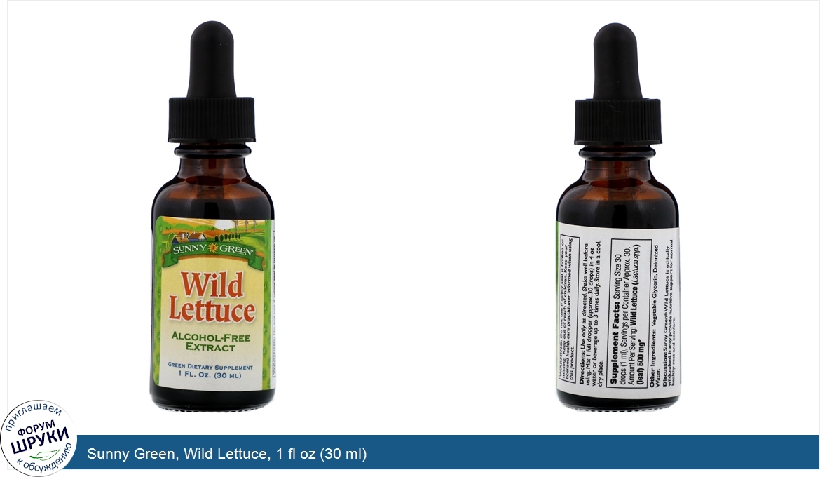 [DESCRIPT]Alcohol-Free Extract. Green Dietary Supplement. Discussion: Sunny Green® Wild Lettuce is ethically wildcrafted. It may provide nutritive support for normal healthy rest and comfort.[/DESCRIPT]... (описание дополняется)