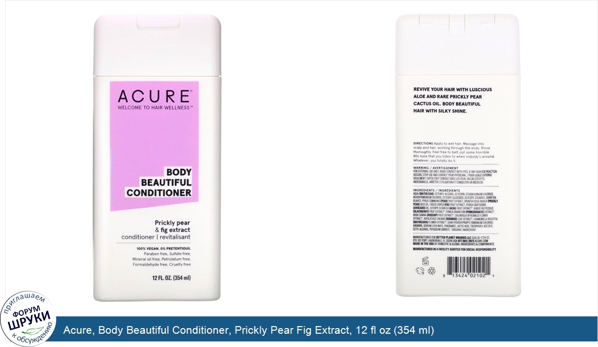Друзья, если у вас есть отзыв/дополнение/комментарий/вопрос относительно Acure, Body Beautiful Conditioner, Prickly Pear Fig Extract, 12 fl oz (354 ml) - напишите его ответом в эту тему (это будет полезно всему сообществу в целом и вам в отдельности).