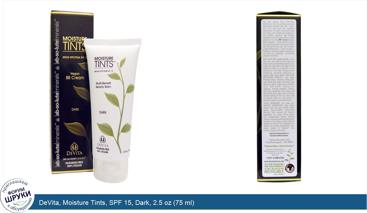 Друзья, если у вас есть отзыв/дополнение/комментарий/вопрос относительно DeVita, Moisture Tints, SPF 15, Dark, 2.5 oz (75 ml) - напишите его ответом в эту тему (это будет полезно всему сообществу в целом и вам в отдельности).