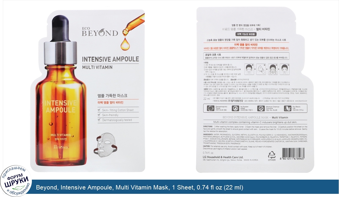 Друзья, если у вас есть отзыв/дополнение/комментарий/вопрос относительно Beyond, Intensive Ampoule, Multi Vitamin Mask, 1 Sheet, 0.74 fl oz (22 ml) - напишите его ответом в эту тему (это будет полезно всему сообществу в целом и вам в отдельности).