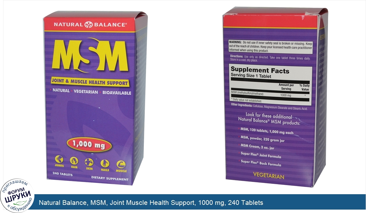 Друзья, если у вас есть отзыв/дополнение/комментарий/вопрос относительно Natural Balance, MSM, Joint Muscle Health Support, 1000 mg, 240 Tablets - напишите его ответом в эту тему (это будет полезно всему сообществу в целом и вам в отдельности).