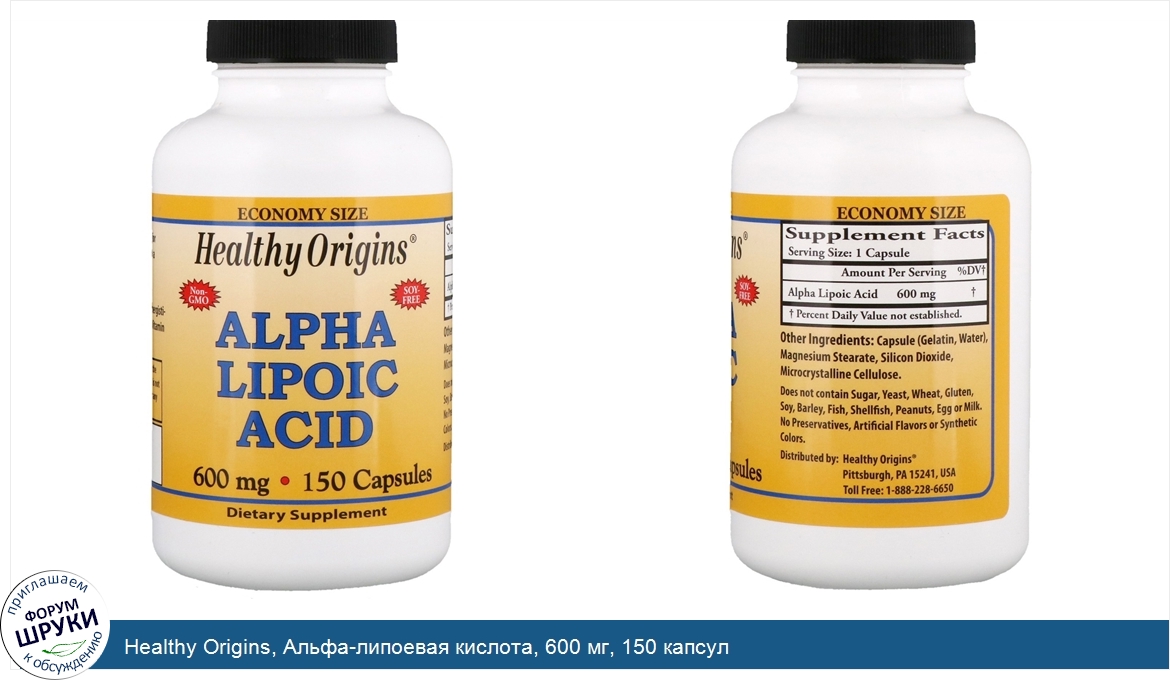 Healthy Origins, Альфа-липоевая кислота, 600 мг, 150 капсул