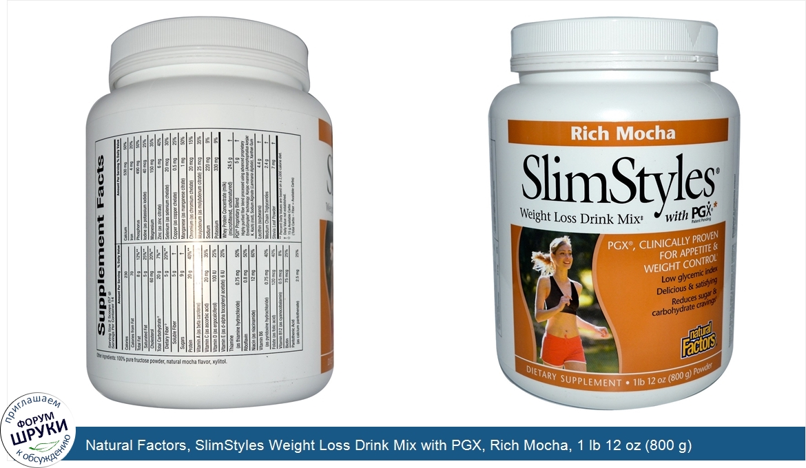 Natural Factors, SlimStyles Weight Loss Drink Mix with PGX, Rich Mocha, 1 lb 12 oz (800 g) Powder