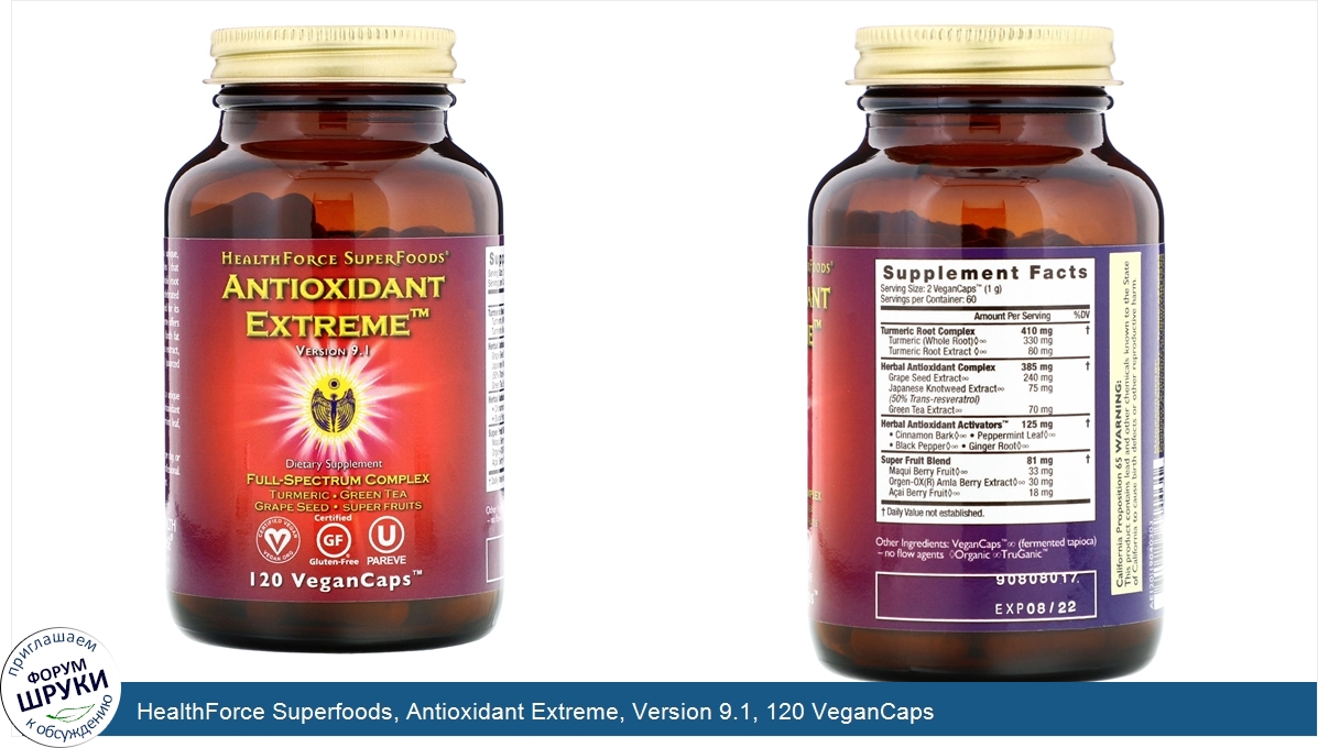 Друзья, если у вас есть отзыв/дополнение/комментарий/вопрос относительно HealthForce Superfoods, Antioxidant Extreme, Version 9.1, 120 VeganCaps - напишите его ответом в эту тему (это будет полезно всему сообществу в целом и вам в отдельности).