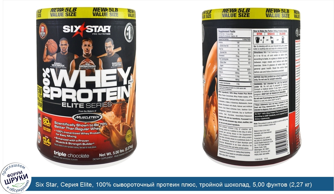 ru Six Star, Серия Elite, 100% сывороточный протеин плюс, тройной шоколад, 5,00 фунтов (2,27 кг)