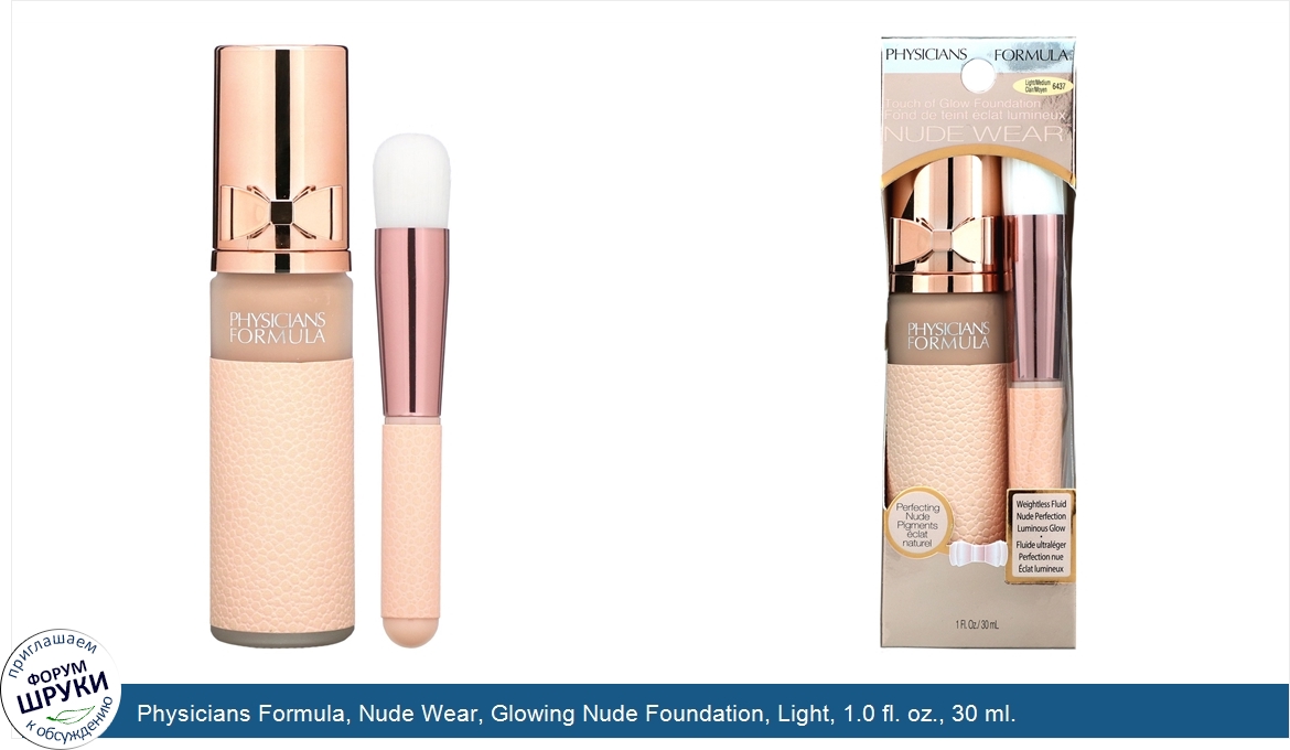 ru Physicians Formula, Nude Wear, Glowing Nude Foundation, Light, 1.0 fl. oz., 30 ml.