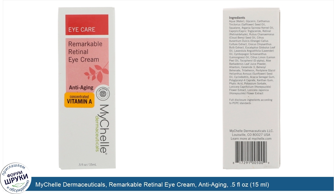 Друзья, если у вас есть отзыв/дополнение/комментарий/вопрос относительно MyChelle Dermaceuticals, Remarkable Retinal Eye Cream, Anti-Aging, .5 fl oz (15 ml) - напишите его ответом в эту тему (это будет полезно всему сообществу в целом и вам в отдельности).