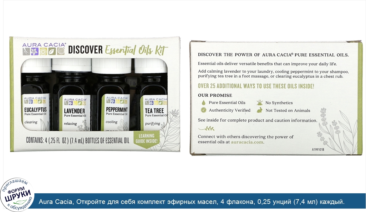 ru Aura Cacia, Откройте для себя комплект эфирных масел, 4 флакона, 0,25 унций (7,4 мл) каждый.