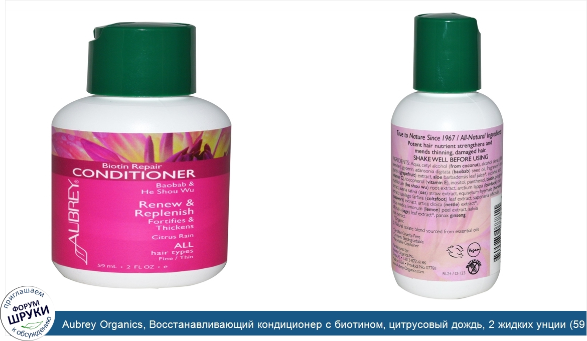 Aubrey Organics, Восстанавливающий кондиционер с биотином, цитрусовый дождь, 2 жидких унции (59 мл)