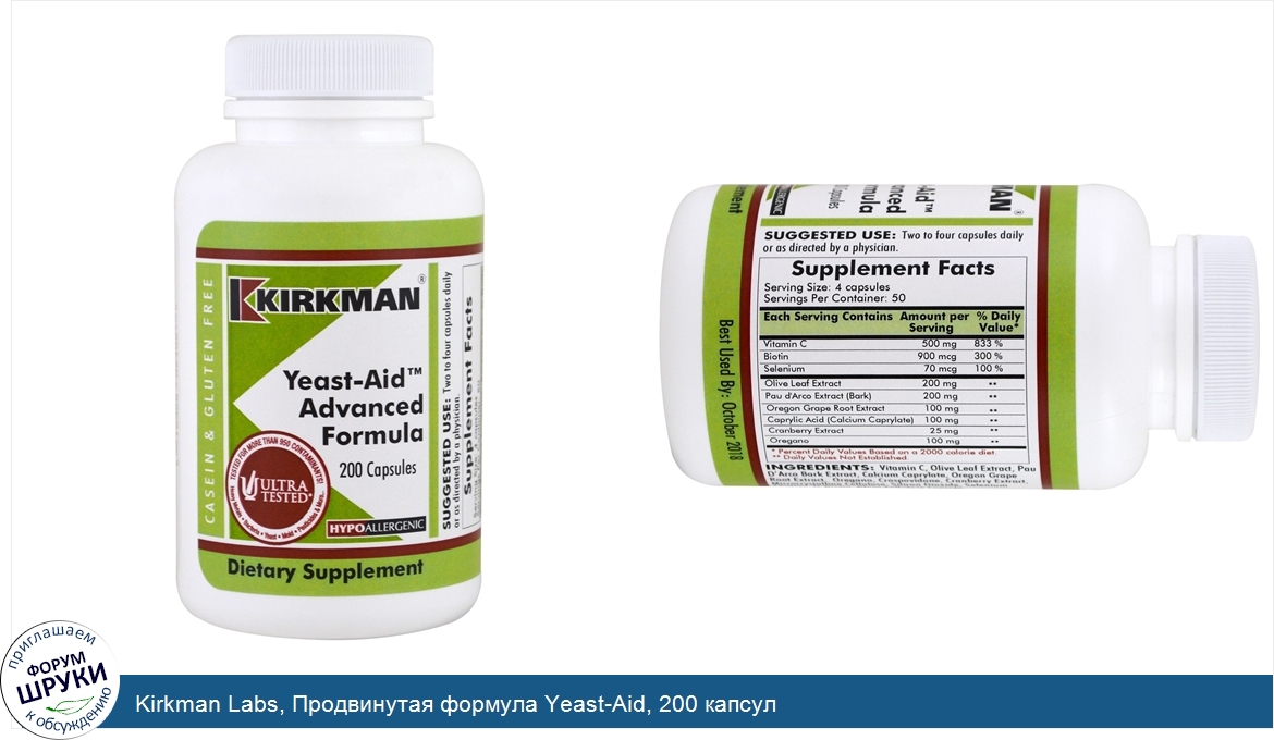 ru Kirkman Labs, Продвинутая формула Yeast-Aid, 200 капсул