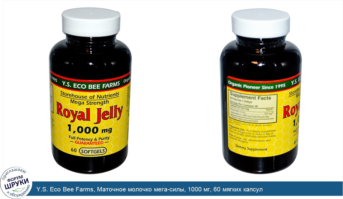 Y.S. Eco Bee Farms, Маточное молочко мега-силы, 1000 мг, 60 мягких капсул