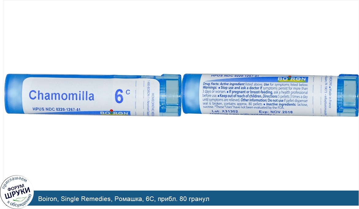 Друзья, если у вас есть отзыв/дополнение/комментарий/вопрос относительно Boiron, Single Remedies, Ромашка, 6C, прибл. 80 гранул - напишите его ответом в эту тему (это будет полезно всему сообществу в целом и вам в отдельности).