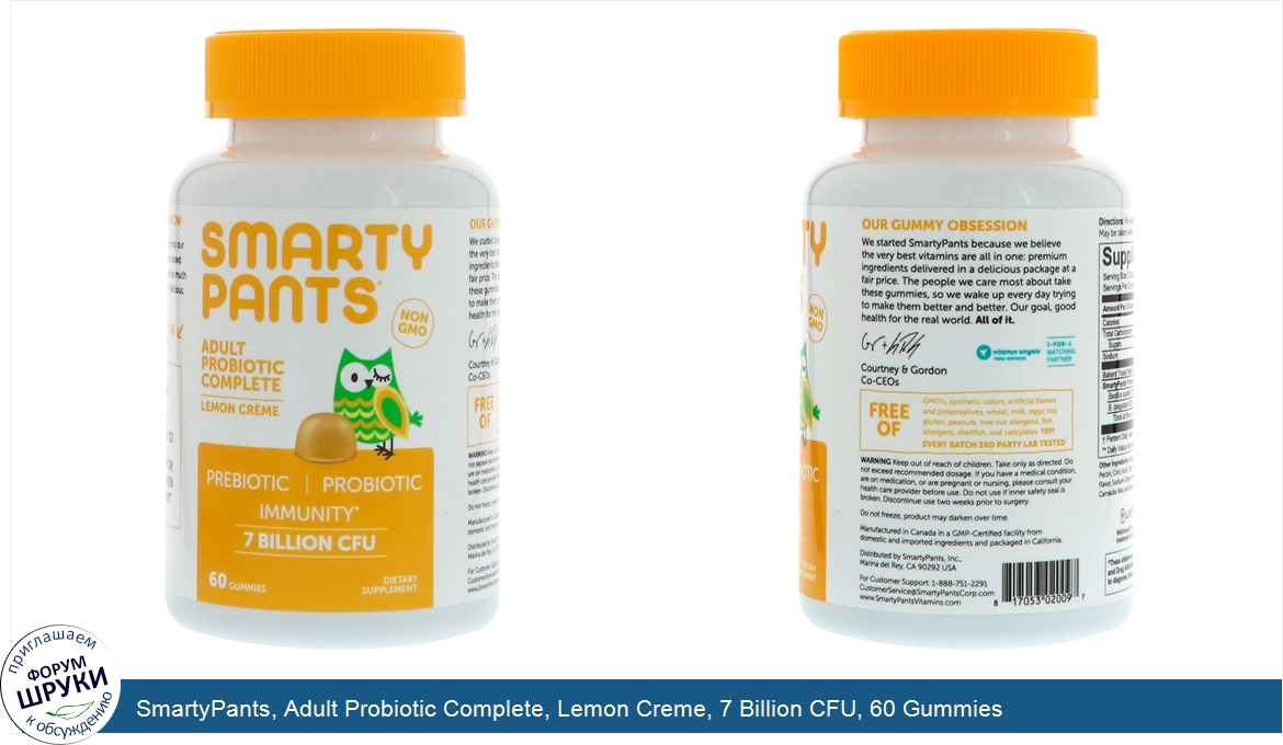 Друзья, если у вас есть отзыв/дополнение/комментарий/вопрос относительно SmartyPants, Adult Probiotic Complete, Lemon Creme, 7 Billion CFU, 60 Gummies - напишите его ответом в эту тему (это будет полезно всему сообществу в целом и вам в отдельности).