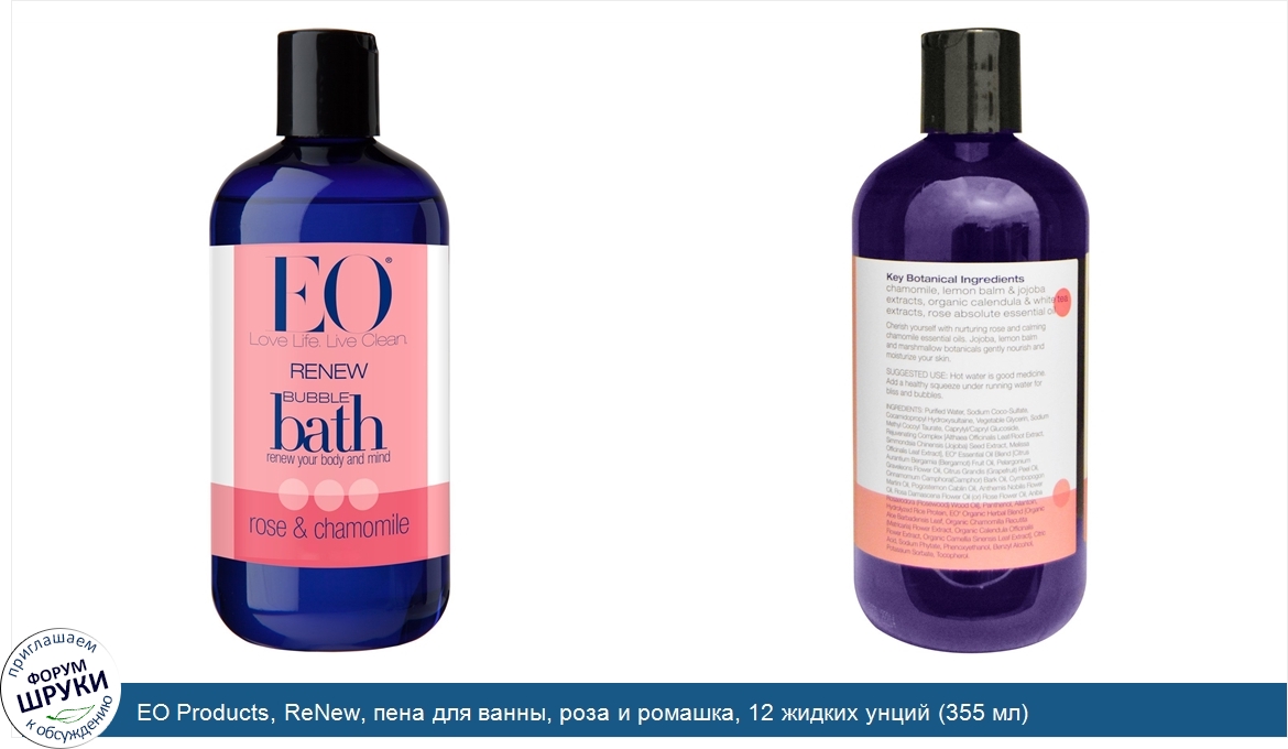 Друзья, если у вас есть отзыв/дополнение/комментарий/вопрос относительно EO Products, ReNew, пена для ванны, роза и ромашка, 12 жидких унций (355 мл) - напишите его ответом в эту тему (это будет полезно всему сообществу в целом и вам в отдельности).