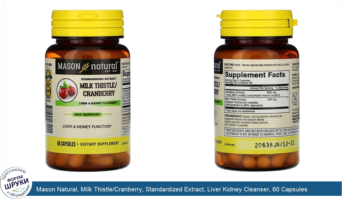 Друзья, если у вас есть отзыв/дополнение/комментарий/вопрос относительно Mason Natural, Milk Thistle/Cranberry, Standardized Extract, Liver Kidney Cleanser, 60 Capsules - напишите его ответом в эту тему (это будет полезно всему сообществу в целом и вам в отдельности).