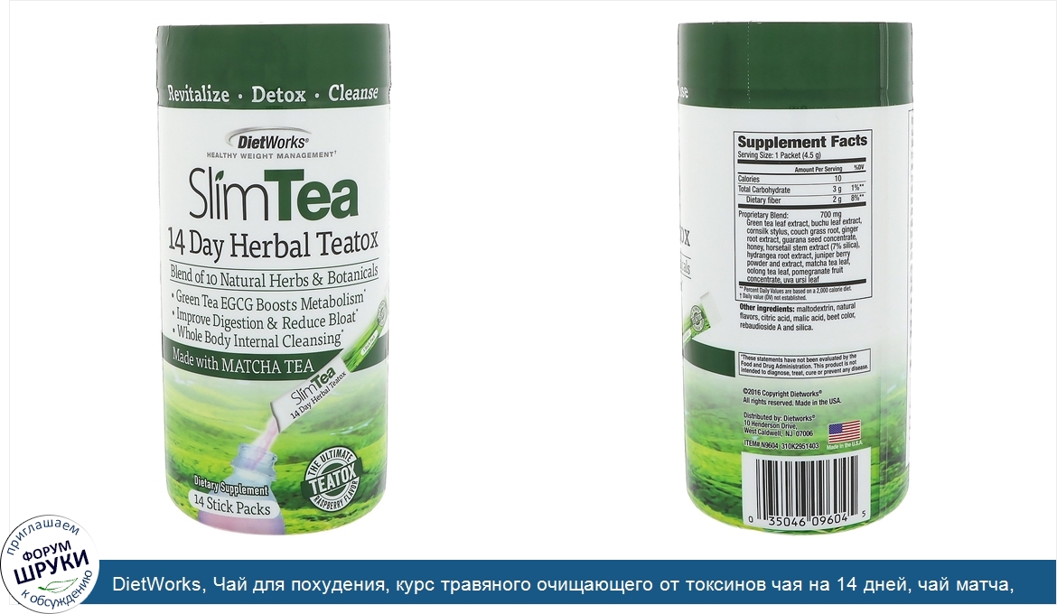Друзья, если у вас есть отзыв/дополнение/комментарий/вопрос относительно DietWorks, Чай для похудения, курс травяного очищающего от токсинов чая на 14 дней, чай матча, со вкусом клубники, 14 бумажных пакетиков - напишите его ответом в эту тему (это будет полезно всему сообществу в целом и вам в отдельности).