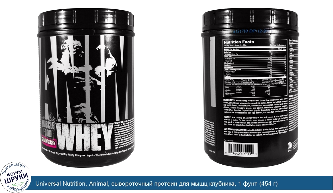 Друзья, если у вас есть отзыв/дополнение/комментарий/вопрос относительно Universal Nutrition, Animal, сывороточный протеин для мышц клубника, 1 фунт (454 г) - напишите его ответом в эту тему (это будет полезно всему сообществу в целом и вам в отдельности).