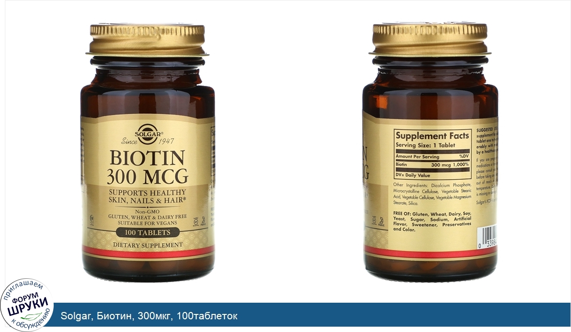 Друзья, если у вас есть отзыв/дополнение/комментарий/вопрос относительно Solgar, Биотин, 300мкг, 100таблеток - напишите его ответом в эту тему (это будет полезно всему сообществу в целом и вам в отдельности).