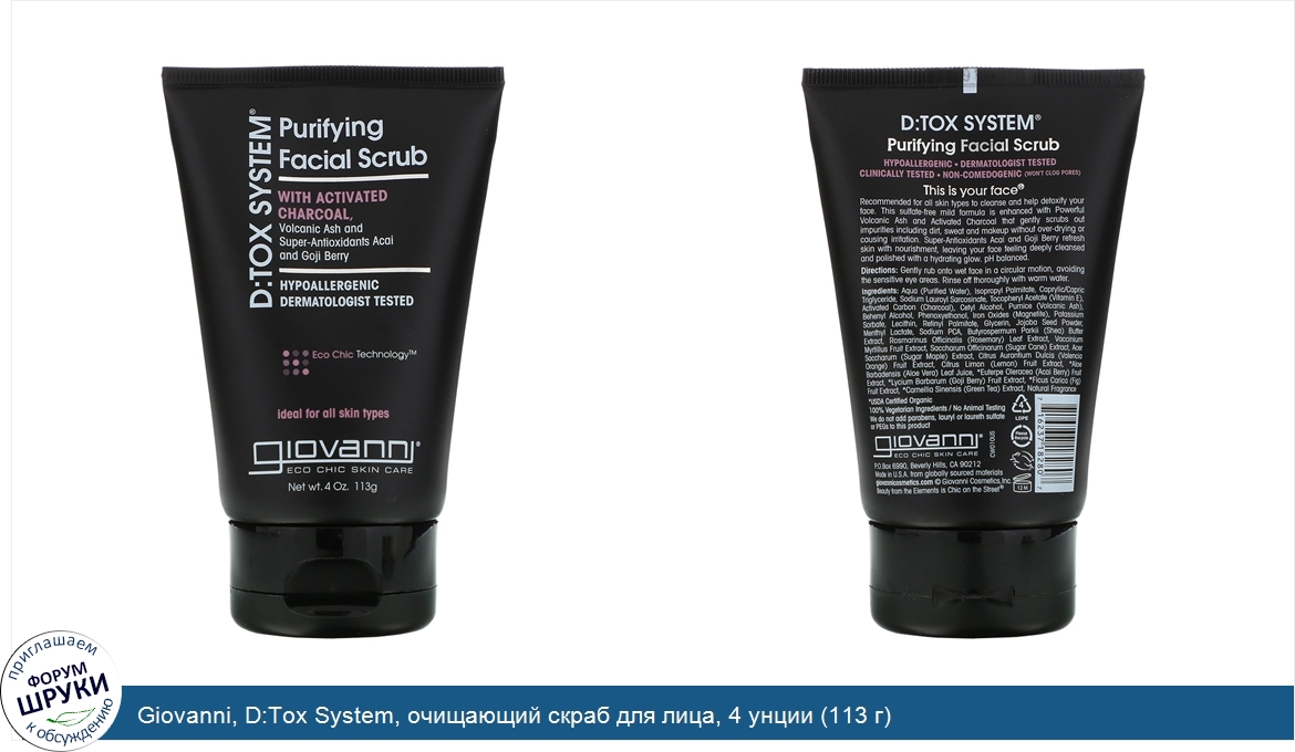 Друзья, если у вас есть отзыв/дополнение/комментарий/вопрос относительно Giovanni, D:Tox System, очищающий скраб для лица, 4 унции (113 г) - напишите его ответом в эту тему (это будет полезно всему сообществу в целом и вам в отдельности).