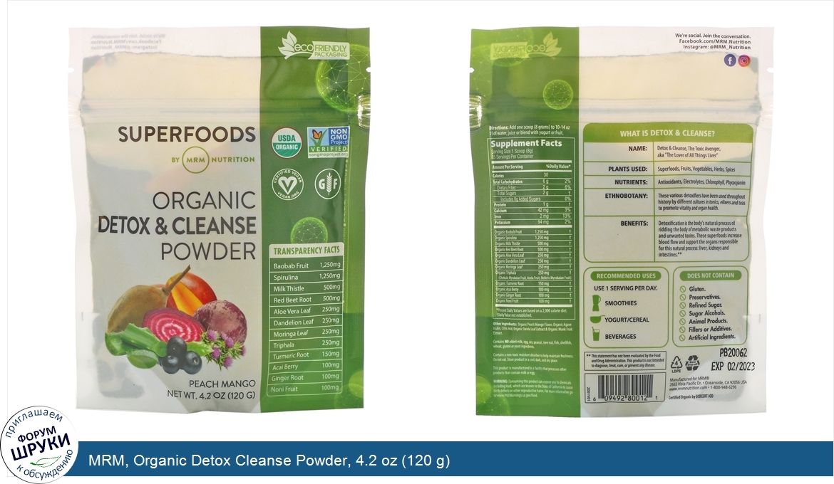 Друзья, если у вас есть отзыв/дополнение/комментарий/вопрос относительно MRM, Organic Detox Cleanse Powder, 4.2 oz (120 g) - напишите его ответом в эту тему (это будет полезно всему сообществу в целом и вам в отдельности).