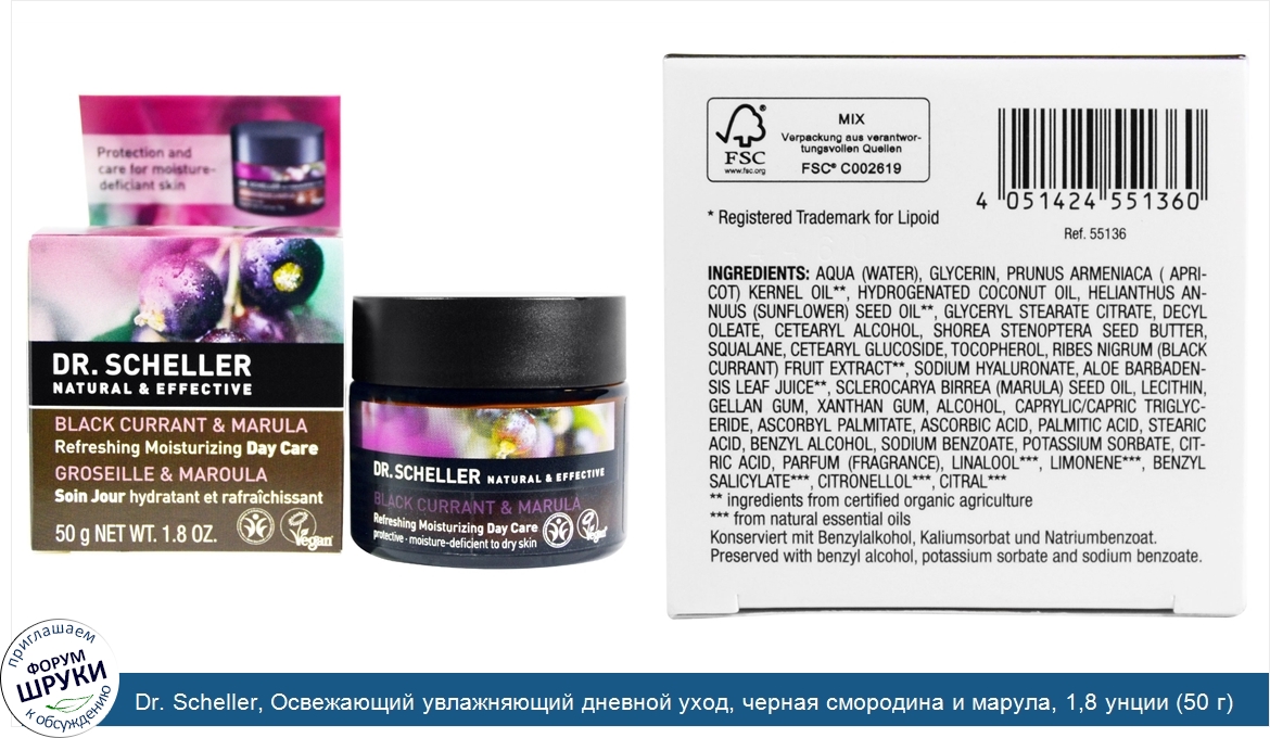 ru Dr. Scheller, Освежающий увлажняющий дневной уход, черная смородина и марула, 1,8 унции (50 г)