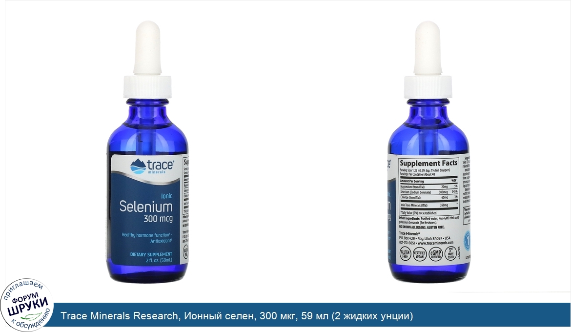 Healthy Hormone Function. Antioxidant. Dietary Supplement. Gluten Free. Certified Vegan. cGMP Certified. 3rd Party Tested. America's #1 Trace Mineral Brand. Ionic Selenium is a rich, concentrated liquid dietary s...