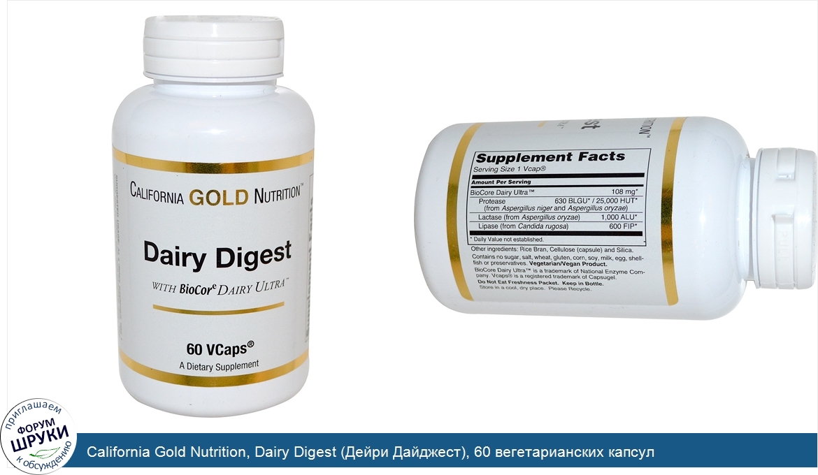 California Gold Nutrition, Dairy Digest (Дейри Дайджест), 60 вегетарианских капсул