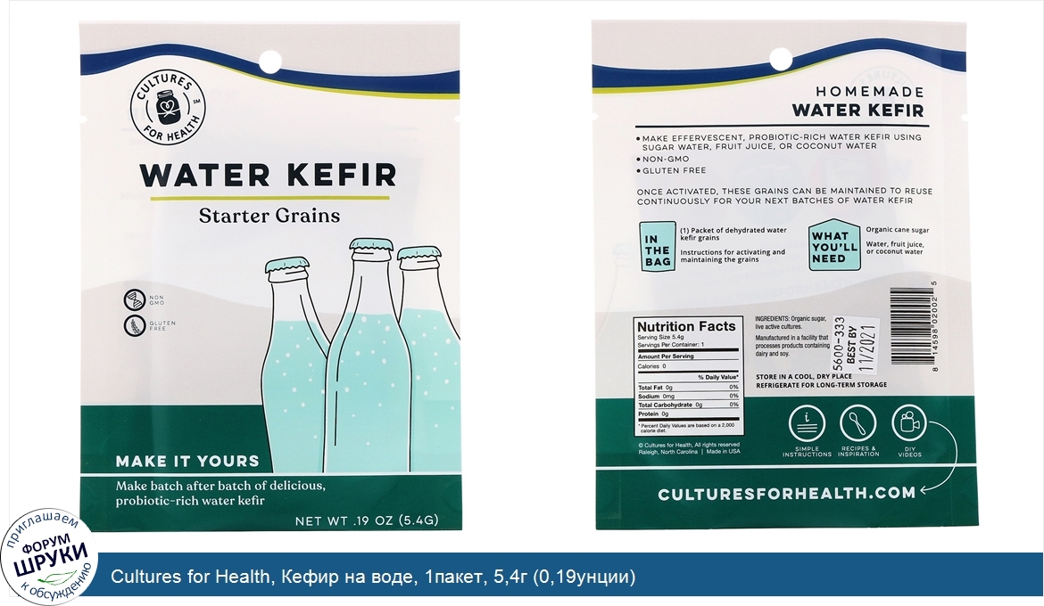 Cultures for Health, Кефир на воде, 1пакет, 5,4г (0,19унции)