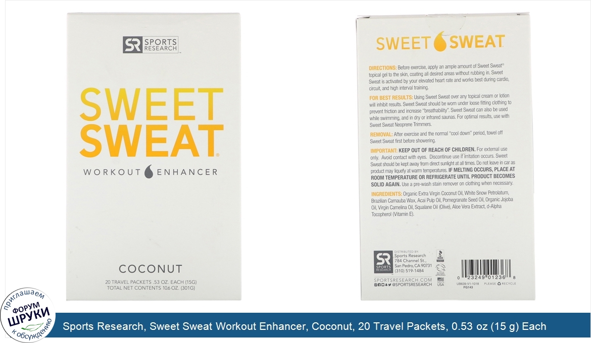 Друзья, если у вас есть отзыв/дополнение/комментарий/вопрос относительно Sports Research, Sweet Sweat Workout Enhancer, Coconut, 20 Travel Packets, 0.53 oz (15 g) Each - напишите его ответом в эту тему (это будет полезно всему сообществу в целом и вам в отдельности).