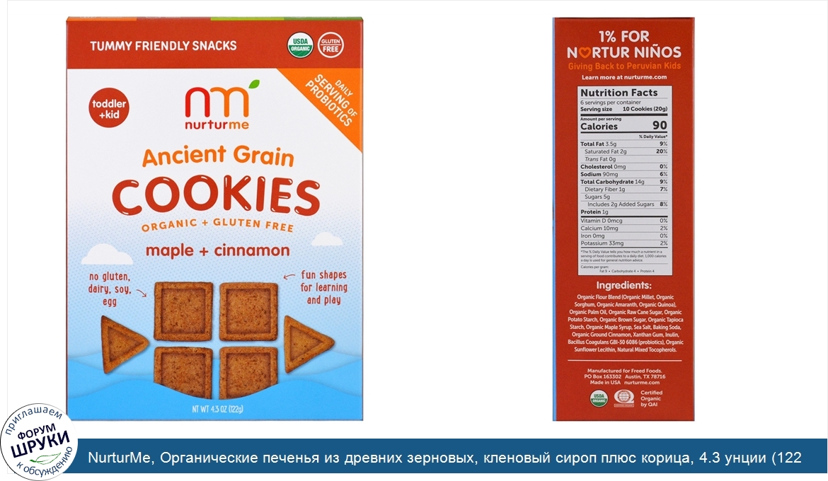 Друзья, если у вас есть отзыв/дополнение/комментарий/вопрос относительно NurturMe, Органические печенья из древних зерновых, кленовый сироп плюс корица, 4.3 унции (122 г) - напишите его ответом в эту тему (это будет полезно всему сообществу в целом и вам в отдельности).