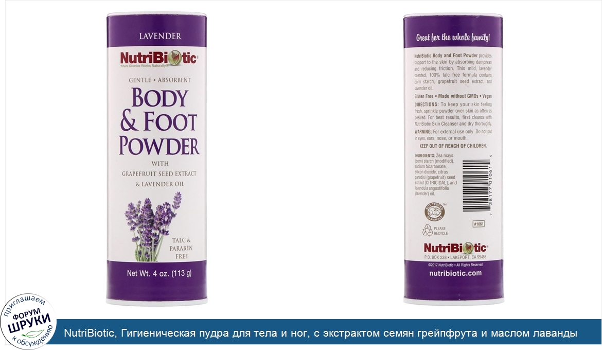 Друзья, если у вас есть отзыв/дополнение/комментарий/вопрос относительно NutriBiotic, Гигиеническая пудра для тела и ног, с экстрактом семян грейпфрута и маслом лаванды, лаванда, 4 унц. (113 г) - напишите его ответом в эту тему (это будет полезно всему сообществу в целом и вам в отдельности).