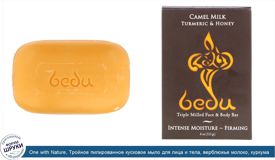 One with Nature, Тройное пилированное кусковое мыло для лица и тела, верблюжье молоко, куркума и мед, 4 унции (113 г)