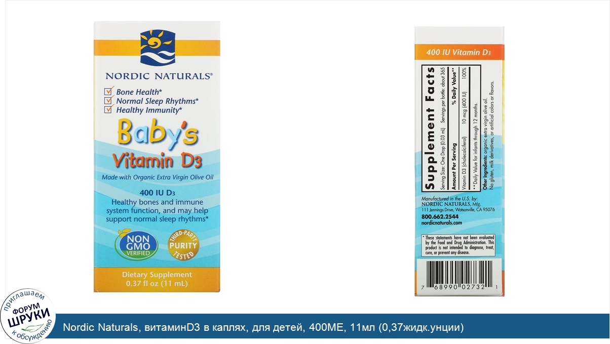 Друзья, если у вас есть отзыв/дополнение/комментарий/вопрос относительно Nordic Naturals, витаминD3 в каплях, для детей, 400МЕ, 11мл (0,37жидк.унции) - напишите его ответом в эту тему (это будет полезно всему сообществу в целом и вам в отдельности).