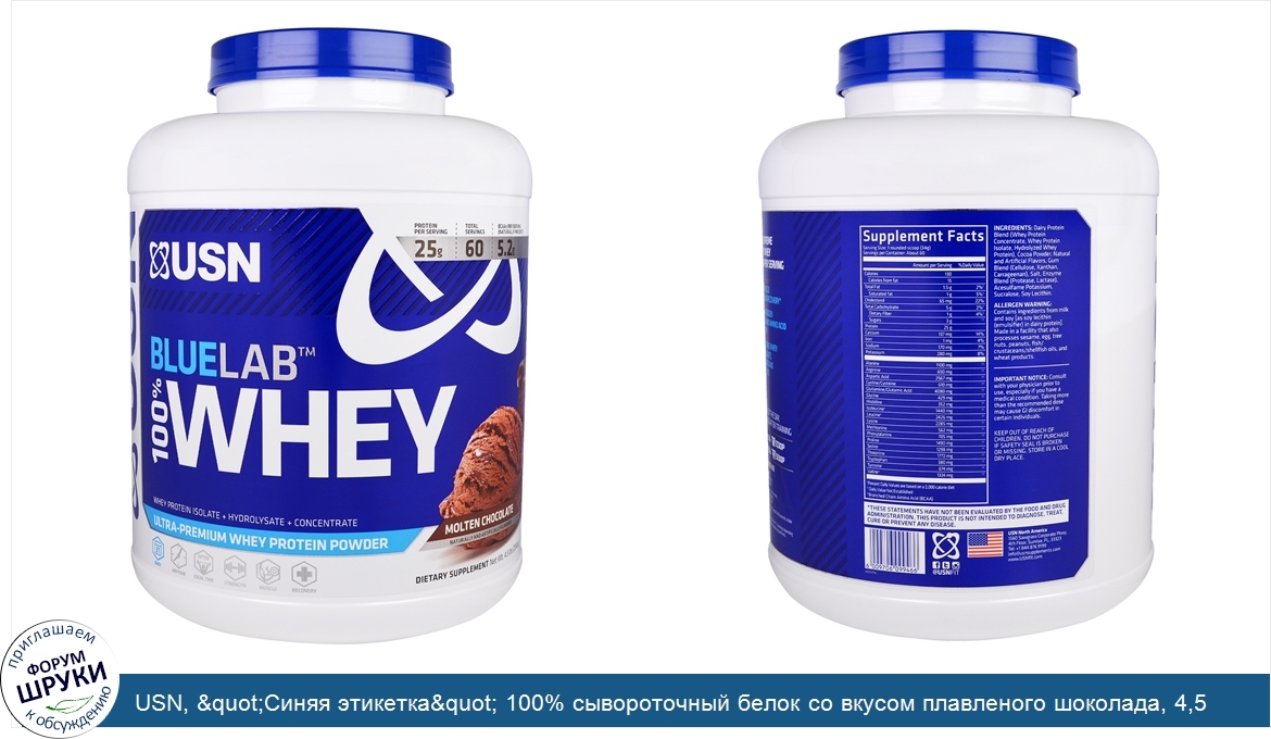 Друзья, если у вас есть отзыв/дополнение/комментарий/вопрос относительно USN, "Синяя этикетка" 100% сывороточный белок со вкусом плавленого шоколада, 4,5 фунта (2041 г) - напишите его ответом в эту тему (это будет полезно всему сообществу в целом и вам в отдельности).