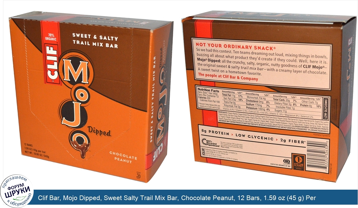 Друзья, если у вас есть отзыв/дополнение/комментарий/вопрос относительно Clif Bar, Mojo Dipped, Sweet Salty Trail Mix Bar, Chocolate Peanut, 12 Bars, 1.59 oz (45 g) Per Bar - напишите его ответом в эту тему (это будет полезно всему сообществу в целом и вам в отдельности).
