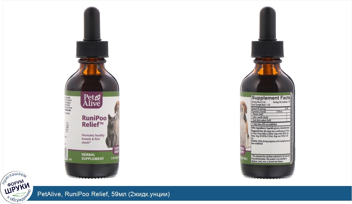 ru PetAlive, RuniPoo Relief, 59мл (2жидк.унции)