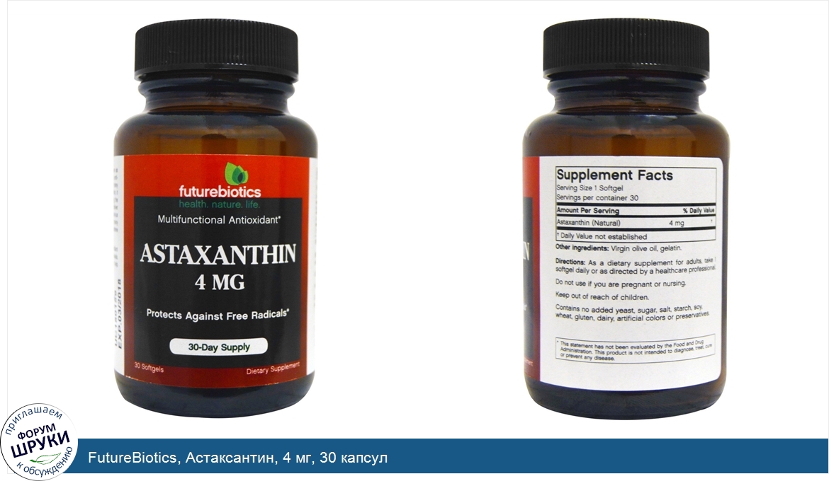 FutureBiotics, Астаксантин, 4 мг, 30 капсул