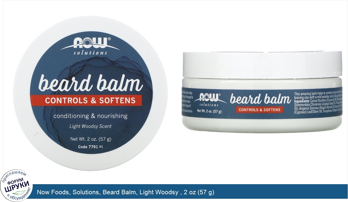 Now Foods, Solutions, Beard Balm, Light Woodsy , 2 oz (57 g)