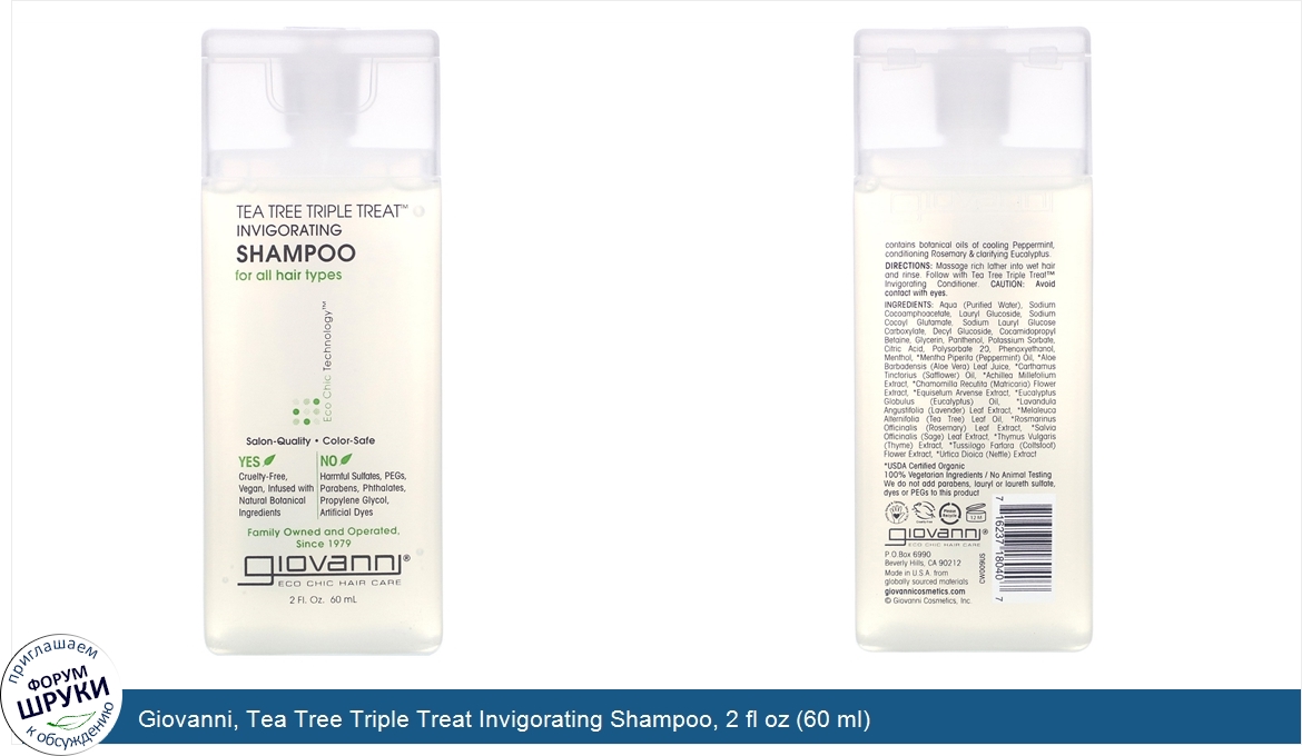 Друзья, если у вас есть отзыв/дополнение/комментарий/вопрос относительно Giovanni, Tea Tree Triple Treat Invigorating Shampoo, 2 fl oz (60 ml) - напишите его ответом в эту тему (это будет полезно всему сообществу в целом и вам в отдельности).