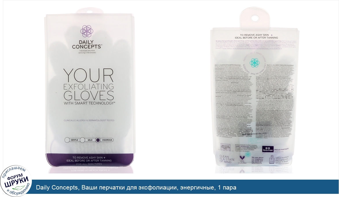 Друзья, если у вас есть отзыв/дополнение/комментарий/вопрос относительно Daily Concepts, Ваши перчатки для эксфолиации, энергичные, 1 пара - напишите его ответом в эту тему (это будет полезно всему сообществу в целом и вам в отдельности).