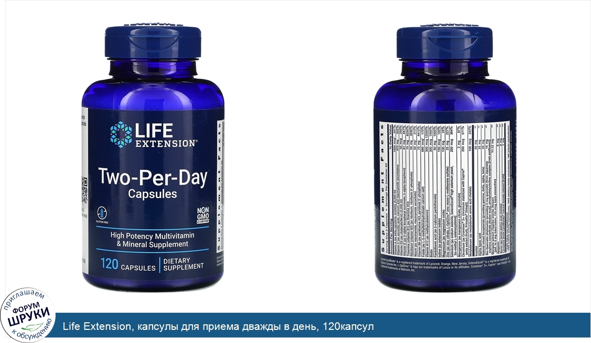 Life Extension, капсулы для приема дважды в день, 120капсул