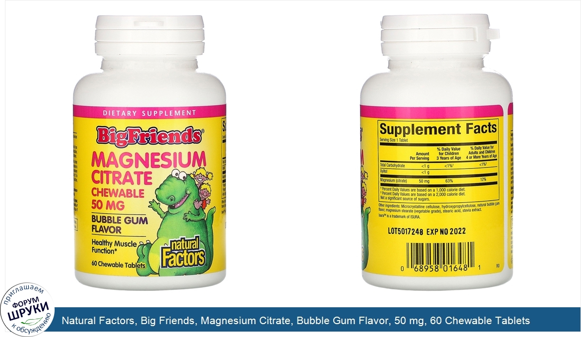 Друзья, если у вас есть отзыв/дополнение/комментарий/вопрос относительно Natural Factors, Big Friends, Magnesium Citrate, Bubble Gum Flavor, 50 mg, 60 Chewable Tablets - напишите его ответом в эту тему (это будет полезно всему сообществу в целом и вам в отдельности).