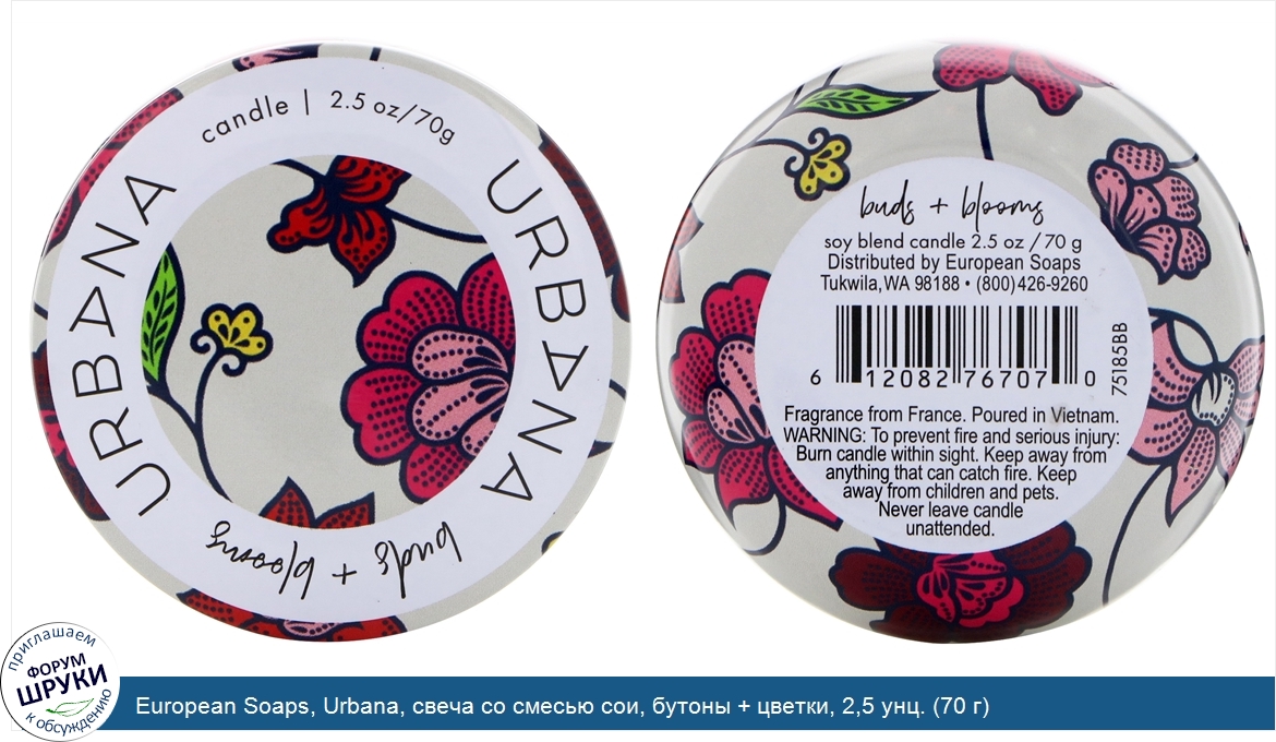 Друзья, если у вас есть отзыв/дополнение/комментарий/вопрос относительно European Soaps, Urbana, свеча со смесью сои, бутоны + цветки, 2,5 унц. (70 г) - напишите его ответом в эту тему (это будет полезно всему сообществу в целом и вам в отдельности).